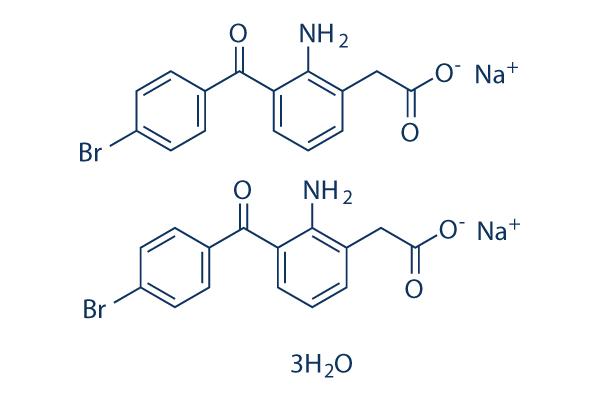 Bromfenac sodium hydrate (Bromsite, Bromday, Prolensa, Xibrom), a brominated nonsteroidal anti-inflammatory drugs (NSAID) with strong in vitro anti-inflammatory potency, is a potent and orally active inhibitor of COX with IC50 of 5.56 nM and 7.45 nM for COX-1 and COX-2, respectively.