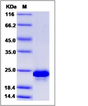 The recombinant canine VEGFA comprises 164 amino acids and has a predicted molecular mass of 19.1 kDa. The apparent molecular mass of the protein is approximately 23 kDa in SDS-PAGE under reducing conditions due to glycosylation.