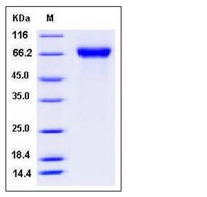 The secreted recombinant influenza A H5N8 HA (A/duck/NY/191255-59/2002 (H5N8)) comprises 522 amino acids and has a predicted molecular mass of 59 kDa. As a result of glycosylation, it migrates as an approximately 70 kDa band in SDS-PAGE under reducing conditions.