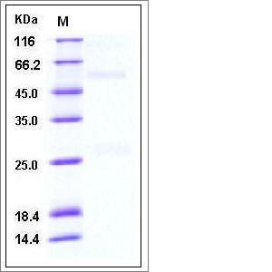 The secreted recombinant hemagglutinin of Influenza A virus (A/bar-headed goose/Qinghai/14/2008 (H5N1) comprises 526 amino acids with the predicted molecular mass of 60 kDa. As a result of glycosylation, it migrates as an approximately 70 kDa band in Non-reduced SDS-PAGE, and two bands (28, 50 kDa) in reduced SDS-PAGE.