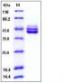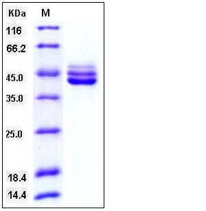 The recombinant human IL12B consists of 317 amino acids and has a predicted molecular mass of 36.2 kDa. As a result of glycosylation, the apparent molecular mass of rhIL12B is approximately 40-50 kDa in SDS-PAGE under reducing conditions.
