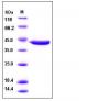 The recombinant human MAPK14 consists of 370 amino acids and predicts amolecular mass of 42.8 kDa which is also estimated by SDS-PAGE.