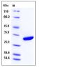 The secreted recombinant human CFD consists of 239 amino acids and predicts a molecular mass of 25.8 kDa. As a result of glycosylation, rh CFD migrates as an approximately 33 kDa band in SDS-PAGE under reducing conditions.