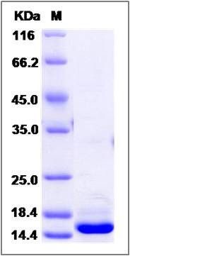 The recombinant human HMGB1 consists of 117 amino acids and predicts a molecular mass of 13.6 KDa. It migrates as an approximately 15 KDa band in SDS-PAGE under reducing conditions.