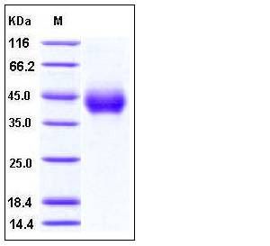 The recombinant human TNFRII comprises 246 amino acids and has a calculated molecular mass of 26.7 kDa. In SDS-PAGE under reducing conditions, the apparent molecular mass of rh TNFRII is approximately 42-45 kDa due to glycosylation.