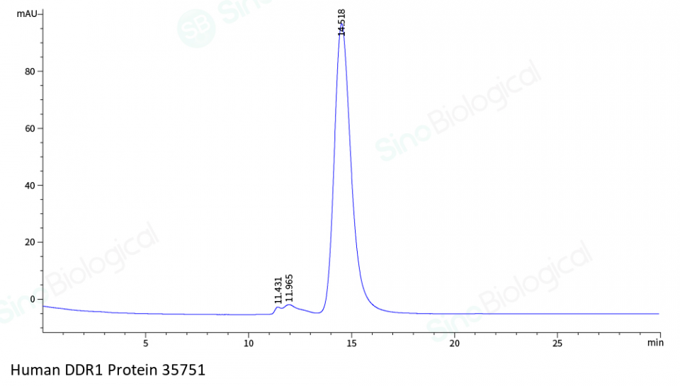 A DNA sequence encoding the extracellular domain of human DDR1 isoform b (NP_001945.3) (Met 1-Thr 416) was expressed, with a C-terminal polyhistidine tag.