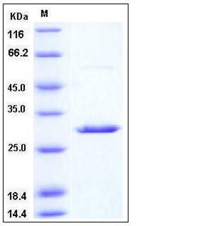 The recombinant human YWHAB consists of 248 amino acids and has a predicted molecular mass of 28 kDa as estimated in SDS-PAGE under reducing conditions.