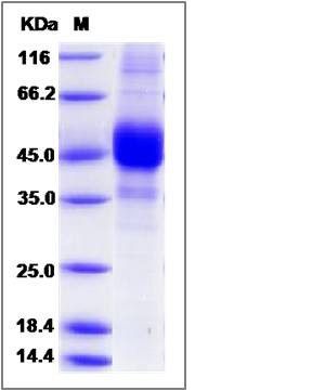 The recombinant human CD3D consists of 335 amino acids and predicts a molecular mass of 37.8 KDa. It migrates as an approximately 47-51 KDa band in SDS-PAGE under reducing conditions.