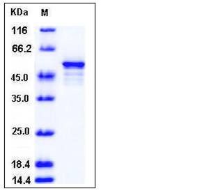 The recombinant human DOT1L comprises 417 amino acids and has a predicted molecular mass of 47.6 kDa. It migrates as an approximately 50 kDa band in SDS-PAGE under reducing conditions as predicted.