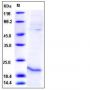 The secreted pro form of recombinant human RLN1 consists of 174 amino acids and predictes a molecular mass of 20 kDa as estimated in SDS-PAGE under reducing conditions.