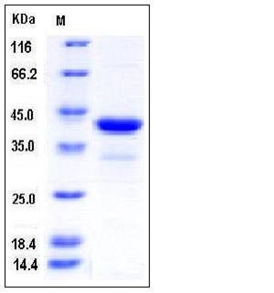 The recombinant human PCBP1 comprises 362 amino acids and has a predicted molecular mass of 38.3 kDa. It migrates as an approximately 42 kDa band in SDS-PAGE under reducing conditions.