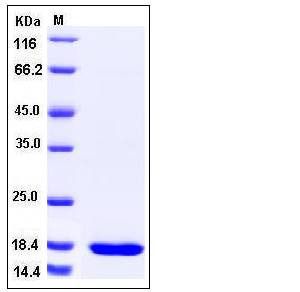 The recombinant human SETD8 comprises 160 amino acids and has a predicted molecular mass of 18.2 kDa. It migrates as an approximately 18 kDa band in SDS-PAGE under reducing conditions as predicted.