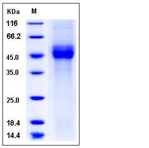 The recombinant human CD19 consists of 283 amino acids and predictes a molecular mass of 31.6 kDa. In SDS-PAGE under reducing conditions, rhCD19 migrates as an approximately 47 kDa band due to glycosylation.