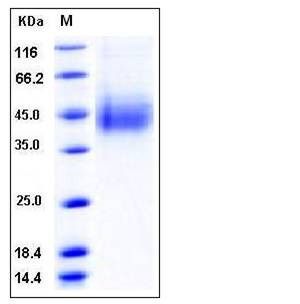 The recombinant human CLEC12A consists of 221 amino acids and has a calculated molecular mass of 26 kDa. The apparent molecular mass of rhCLEC12A is approximately 40-45 kDa in SDS-PAGE under reducing conditions.