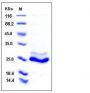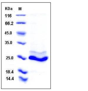 The recombinant human KRAS consisting of 195 amino acids and has a calculated molecular mass of 22.5 kDa. It migrates as an 25 kDa band in SDS-PAGE under reducing conditions as predicted