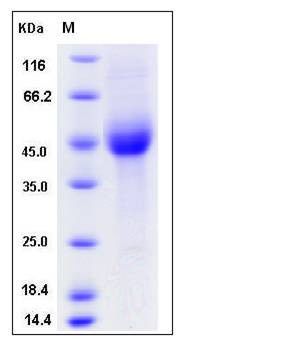 The secreted recombinant human KIR2DL1 comprises 235 amino acids and has a predicted molecular mass of 26 kDa. The apparent molecular mass of rhKIR2DL1 is approximately 45 kDa in SDS-PAGE under reducing conditions due to glycosylation.