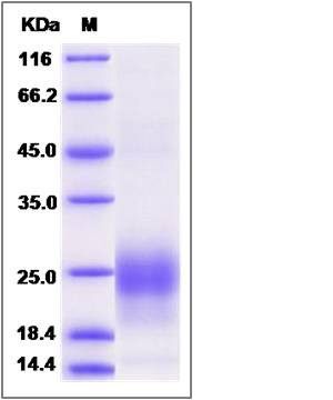 The recombinant human BST2 comprises 132 amino acids and has a predicted molecular mass of 14.9 kDa. The apparent molecular mass of the protein is approximately 23-26 kDa in SDS-PAGE under reducing conditions due to glycosylation.