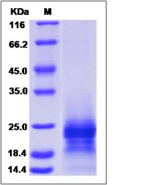 The recombinant human PRAP1 comprises 142 amino acids and has a predicted molecular mass of 16.4 kDa. The apparent molecular mass of the protein is approximately 23.3 kDa in SDS-PAGE under reducing conditions.