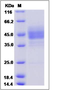 The recombinant human EDNRB/mFc comprises 309 amino acids and has a predicted molecular mass of 34.4 kDa. The apparent molecular mass of the protein is approximately 47.5 and 43.7 kDa in SDS-PAGE under reducing conditions.