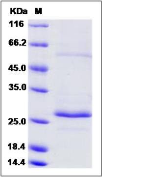 The recombinant human RAB27B comprises 216 amino acids and has a predicted molecular mass of 24.3 kDa. The apparent molecular mass of the monomer is approximately 27 kDa in SDS-PAGE under reducing conditions.