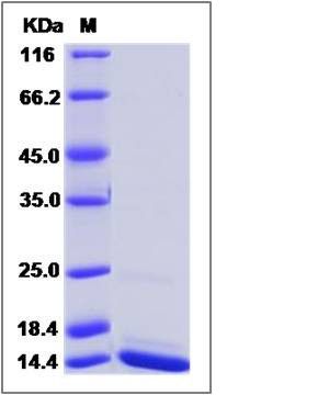 The recombinant human CISD1 consists of 95 amino acids and predicts a molecular mass of 11.3 KDa. It migrates as an approximately 14 KDa band in SDS-PAGE under reducing conditions.