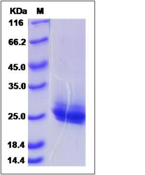 The recombinant human FZD10 consists of 152 amino acids and predicts a molecular mass of 17.5 KDa. It migrates as an approximately 25.4 KDa band in SDS-PAGE under reducing conditions.