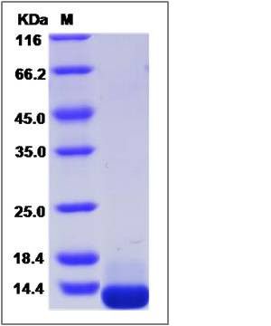 The recombinant human COL6A3 comprises 101 amino acids and has a predicted molecular mass of 11.4 kDa. The apparent molecular mass of the protein is approximately 13.3 kDa in SDS-PAGE under reducing conditions.