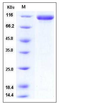The recombinant mouse gp130/Fc chimera is a disulfide-linked homodimer. The reduced monomer consists of 843 amino acids and has a predicted molecular mass of 94.7 kDa. As a result of glycosylation, the apparent molecular mass of rm gp130/Fc monomer is approximately 120-130 kDa in SDS-PAGE under reducing conditions.