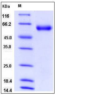 The secreted recombinant mouse AGT consists of 464 amino acids and has a calculated molecular mass of 50.8 kDa. The apparent molecular mass of the recombinant mouse AGT is approximately 58 kDa in SDS-PAGE under reducing conditions due to glycosylation.