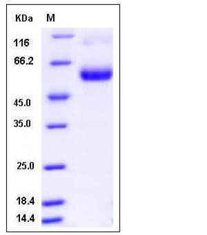 The secreted recombinant mouse TNFRSF1A/Fc is a disulfide-linked homodimer. The reduced monomer consists of 424 amino acids and has a predicted molecular mass of 47.4 kDa. In SDS-PAGE under reducing conditions, the apparent molecular mass of rm TNFRSF1A/Fc monomer is approximately 55 kDa due to glycosylation.