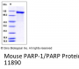 The recombinant mouse PARP1 consists of 1033 amino acids and has a calculated molecular mass of 115 kDa. It migrates as an approximately 75 kDa band in SDS-PAGE under reducing conditions.