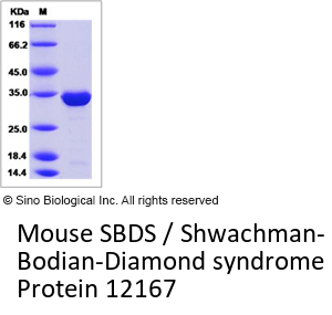 A DNA sequence encoding the mouse Sbds (NP_075737.1) (Met1-Glu250) was expressed with a polyhistidine tag at the N-terminus.