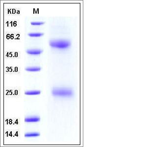 The secreted recombinant hemagglutinin of Influenza A virus ((A/VietNam/1194/2004 (H5N1)) comprises 526 amino acids with the predicted molecular mass of 60 kDa. As a result of glycosylation, it migrates as an approximately 65-70 kDa band in Non-reduced SDS-PAGE, and two bands (25, 55 kDa) in reduced SDS-PAGE.