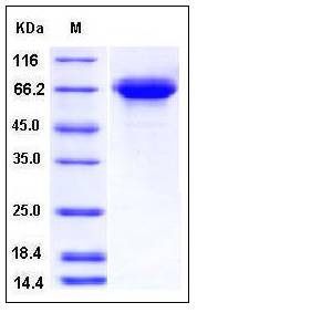 The secreted recombinant influenza A H13N8 HA (A/black-headed gull/Netherlands/1/00 (H13N8)) comprises 521 amino acids and has a predicted molecular mass of 58.5 kDa. As a result of glycosylation, the apparent molecular mass of the protein is approximately 60-70 kDa band in SDS-PAGE under reducing conditions.