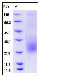 The recombinant cynomolgus CD3D consists of 95 amino acids and has a calculated molecular mass of 11 kDa. The apparent molecular mass of the recombinant protein is approximately 25-35 KDa in SDS-PAGE under reducing conditions due to glycosylation.