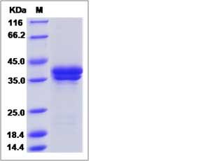Purity > (65.3+32.9) % as determined by SDS-PAGE.