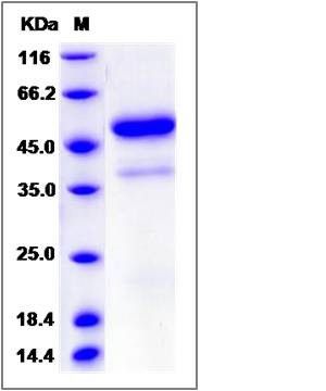 The recombinant Rat FIGF/Fc comprises 377 amino acids and has a predicted molecular mass of 41.6 kDa. The apparent molecular mass of the protein is approximately 52 kDa in SDS-PAGE under reducing conditions.