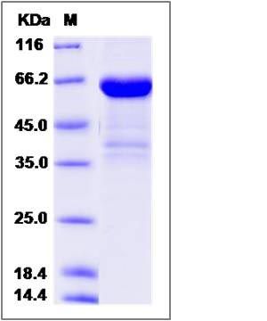 The recombinant rat FCER2 comprises 542 amino acids and predicts a molecular mass of 60.2 kDa. The apparent molecular mass of the recombinant protein is approximately 61 kDa in SDS-PAGE under reducing conditions due to glycosylation.