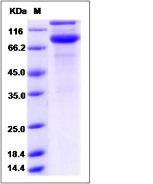 The recombinant rat CSF2Rb/Fc is a disulfide-linked homodimer. The reduced monomer comprises 659 amino acids and has a predicted molecular mass of 75.1 kDa. The apparent molecular mass of the protein is approximately 123 and 89 kDa in SDS-PAGE under reducing conditions.