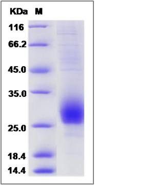 The recombinant rat CD79B comprises 144 amino acids and predicts a molecular mass of 16.8 kDa. The apparent molecular mass of the recombinant protein is approximately 28 kDa in SDS-PAGE under reducing conditions due to glycosylation.