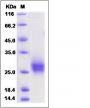 The recombinant rat THY1 comprises 121 amino acids and predicts a molecular mass of 14.1 kDa. The apparent molecular mass of the recombinant protein is approximately 27-29 kDa in SDS-PAGE under reducing conditions due to glycosylation.