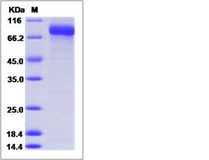 The recombinant rat HRG consists of 518 amino acids and predicts a molecular mass of 58.6 kDa.