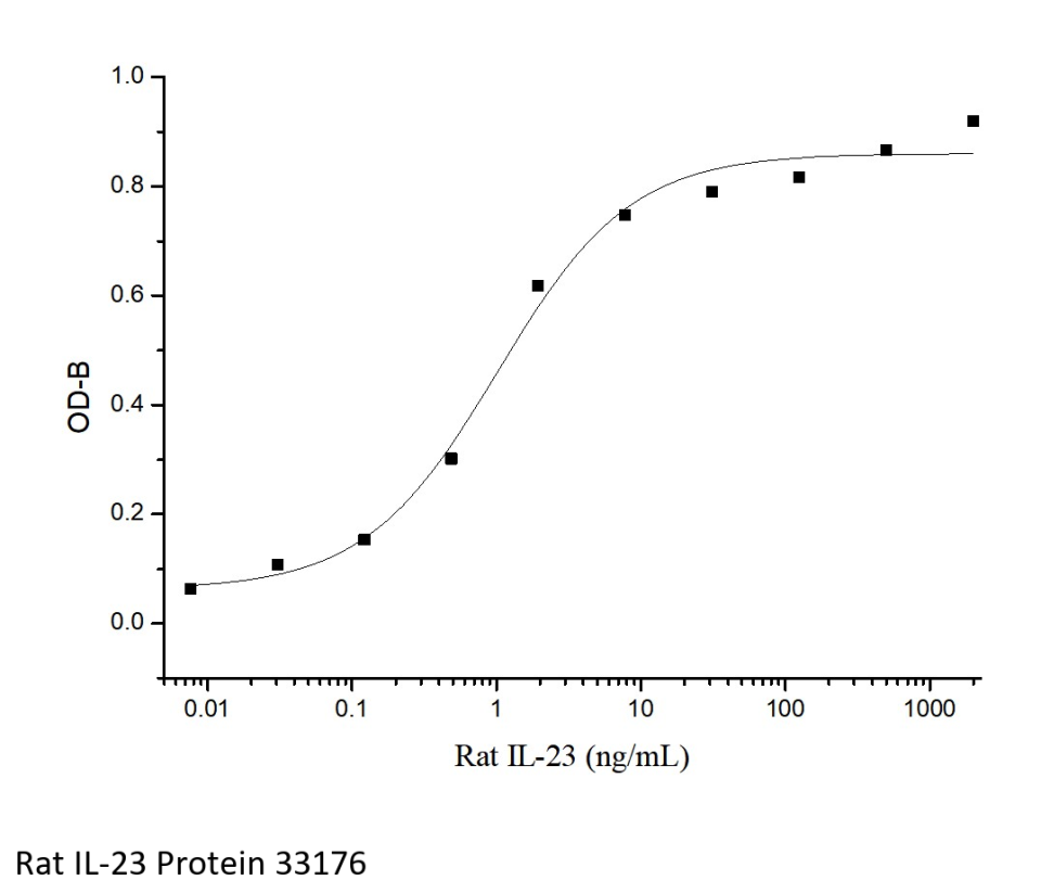 A DNA sequence encoding the rat IL23A (NP_569094.1) (Met1-Ala196) was fused with a polyhistidine tag at the C-terminus, constructed the plasmid 1; A DNA sequence encoding the rat IL12B (EDM04146.1) (Met1-Ser335) was expressed with a polyhistidine tag at the C-terminus, constructed the plasmid 2. The two plasmids were co-expressed and the rat IL23A & the rat IL12B heterodimer was purified.