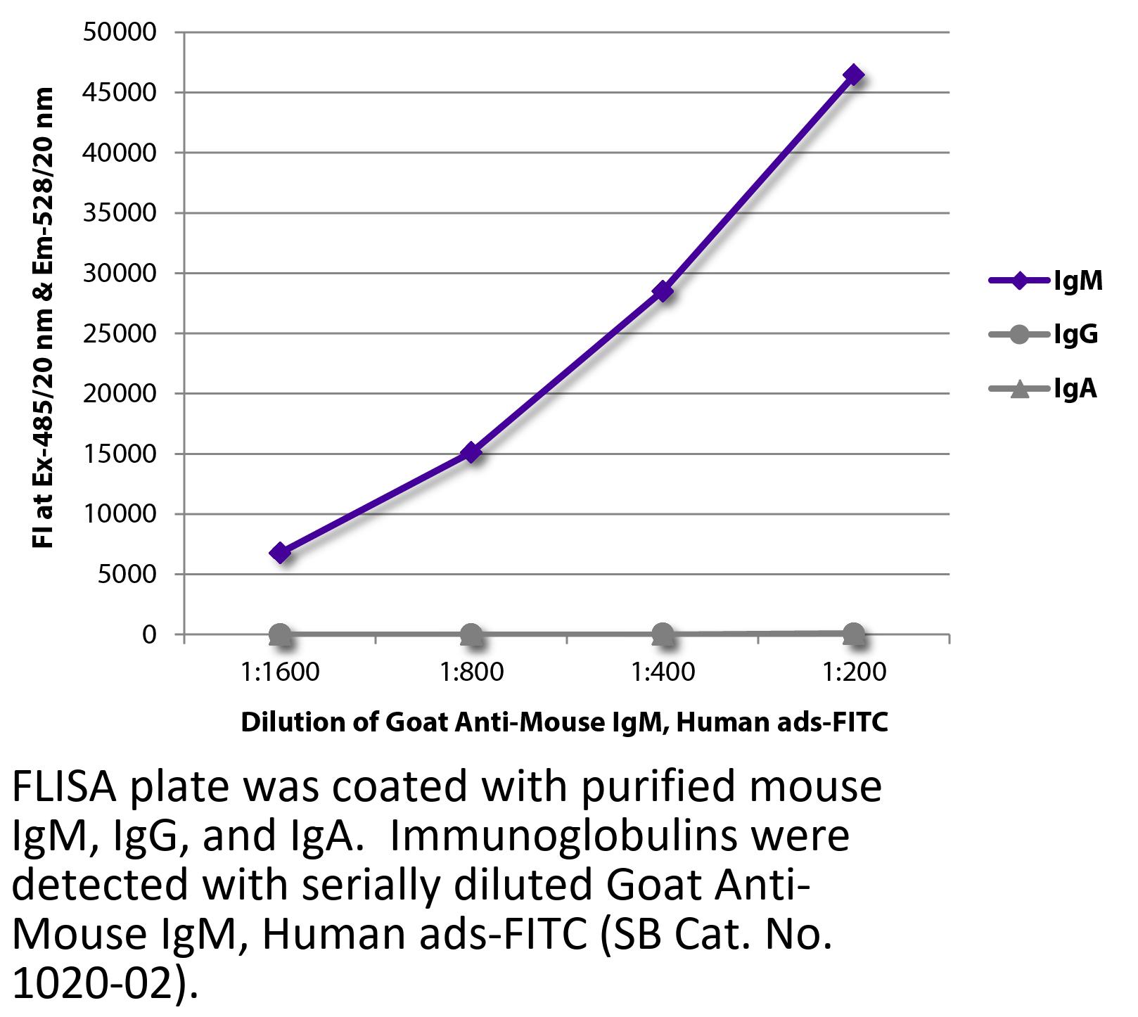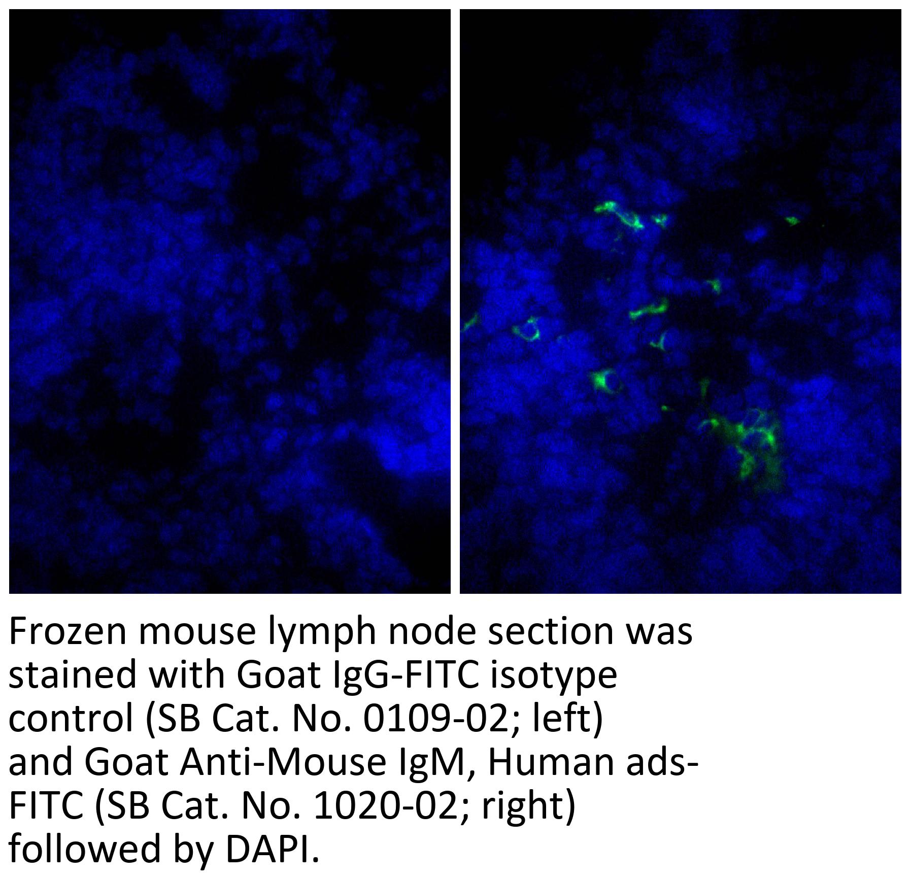 Goat Anti-Mouse IgM-FITC antibody with minimal reactivity to human proteins for use in flow cytometry, immunohistochemistry / immunocytochemistry, and western blot assays.