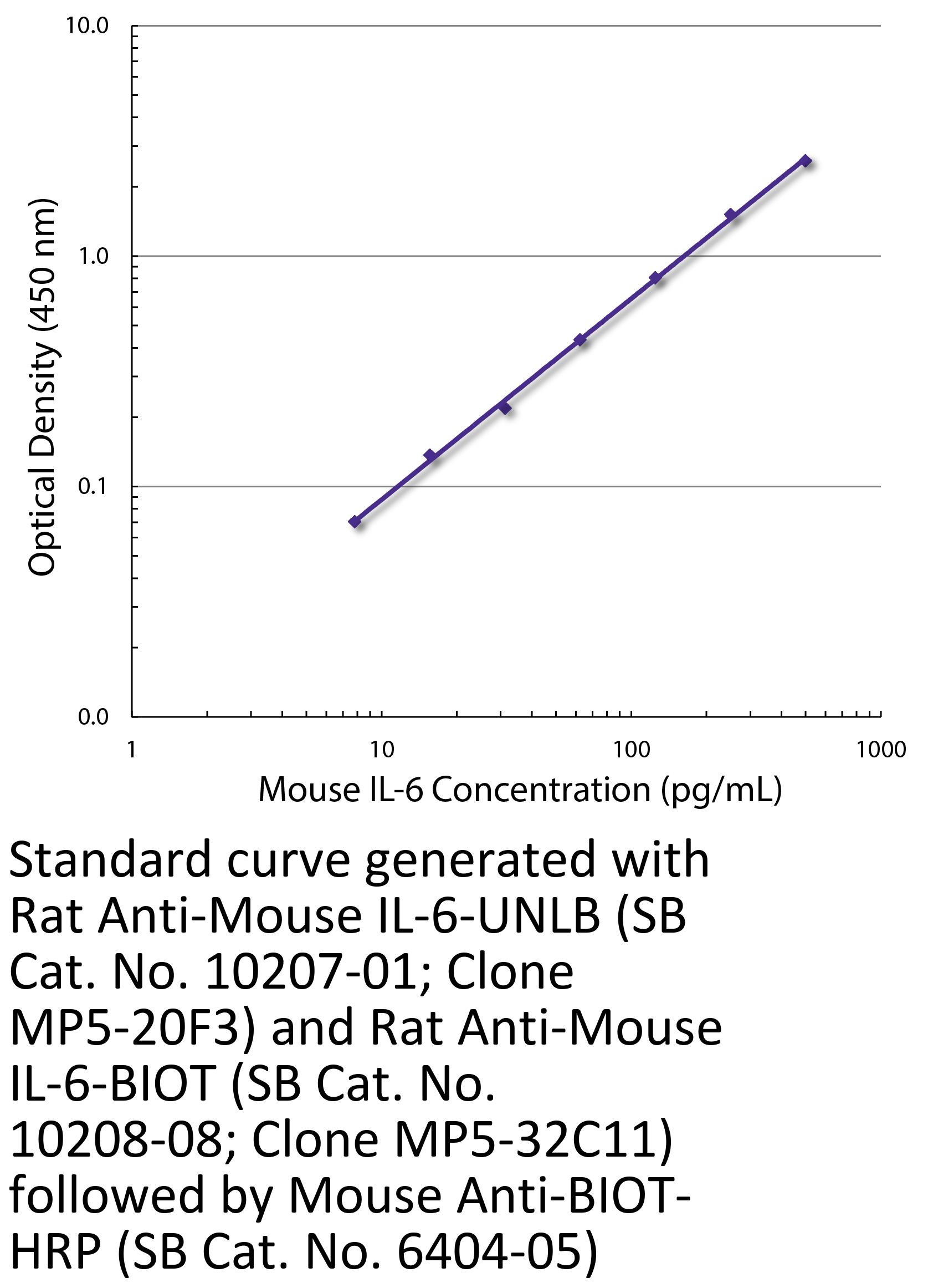 Purified Anti-Mouse IL-6 antibody for use in flow cytometry, immunohistochemistry / immunocytochemistry, immunoprecipitation, ELISA, ELISpot, and multiplex assays.