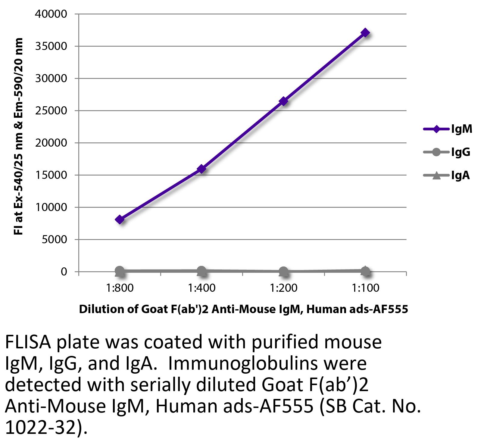 Goat F(ab')2 Anti-Mouse IgM, Human ads-AF555