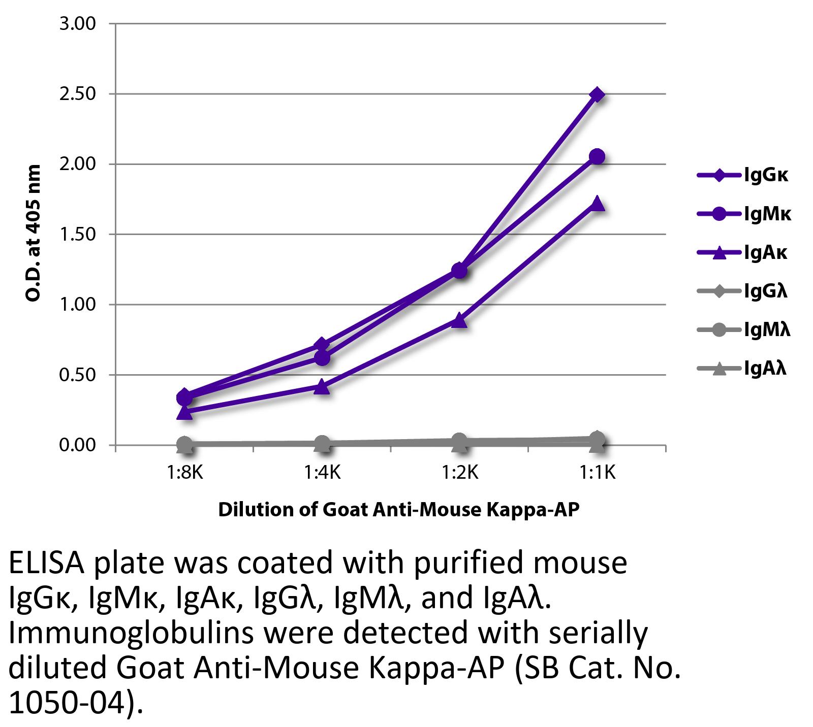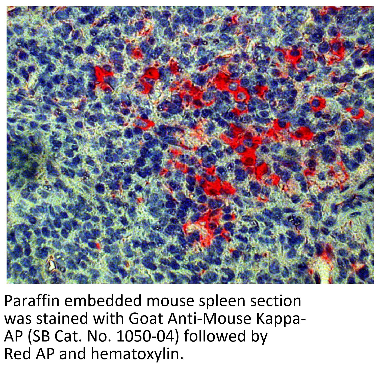 Goat Anti-Mouse Kappa-AP antibody for use in ELISA, immunohistochemistry / immunocytochemistry, western blot, and ELISpot assays.