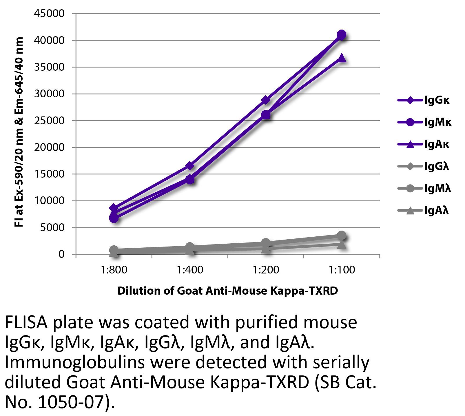 Goat Anti-Mouse Kappa-Texas Red antibody for use in flow cytometry and immunohistochemistry / immunocytochemistry assays.