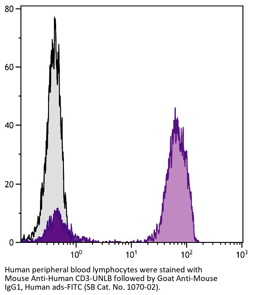 Goat Anti-Mouse IgG1-FITC antibody with minimal reactivity to human proteins for use in flow cytometry, immunohistochemistry / immunocytochemistry, and western blot assays.