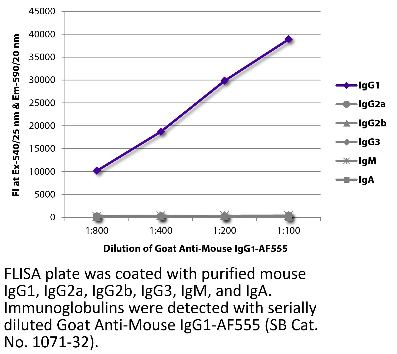 Goat Anti-Mouse IgG1-Alexa Fluor 555 antibody for use in immunocytochemistry and other fluorescent assays.